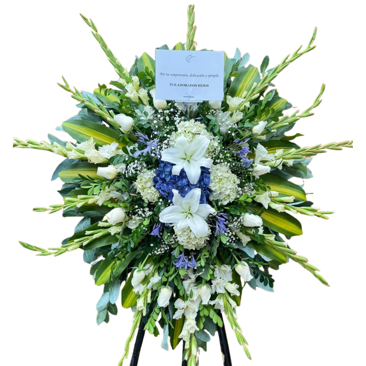 Corona Fúnebre Estadio Nacional con hermosos liliums, hortencias y finos follajes